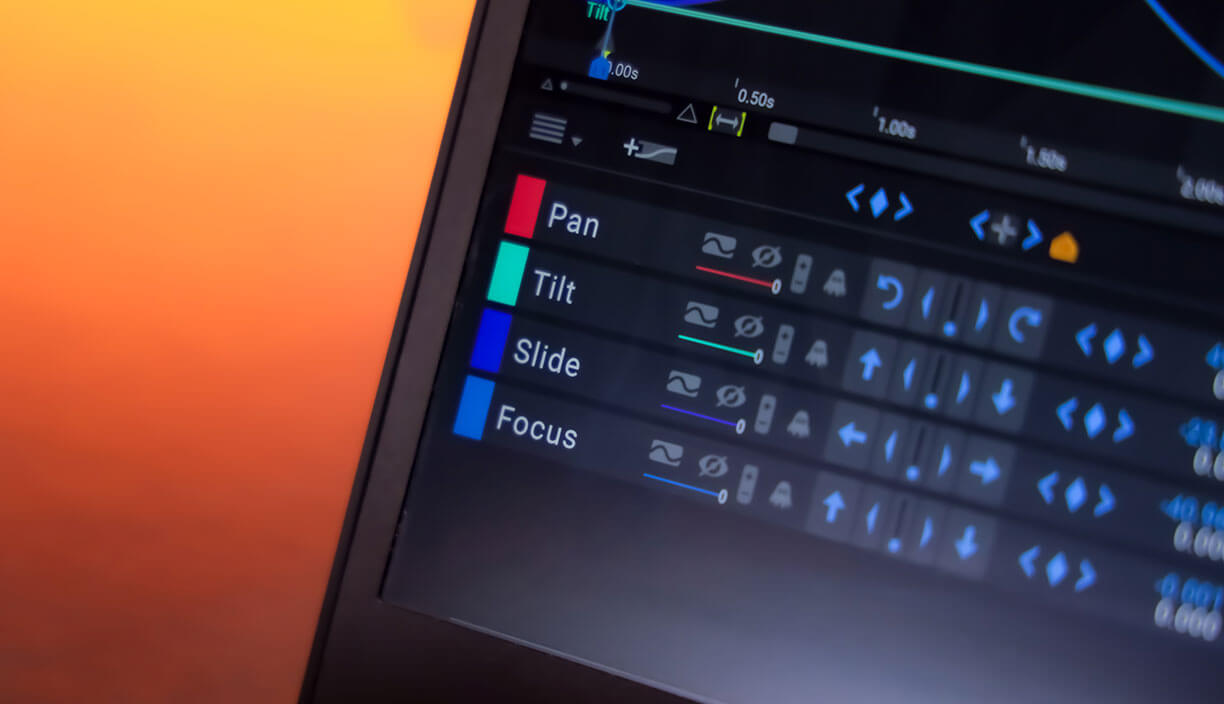 You can control pan & tilt, slide, jib, dolly and focus motions, set and recall keyposes, and also adjust the transition speed and acceleration.