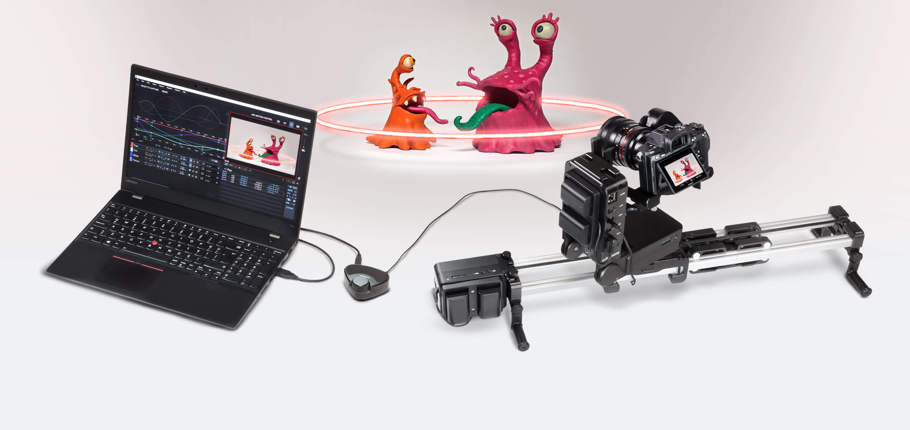 Both HeadPLUS and Motor Module, and their predecessors have super-accurate backlash-free gear design, which creates perfectly repeatable and smooth motion, even with the most demanding shots. The system can be moved back to the same position each time, making it especially useful when you need to retake previous frames of your animation. edelkrone USB Adapter only supports the shoot-move-shoot motion when used with Dragonframe.