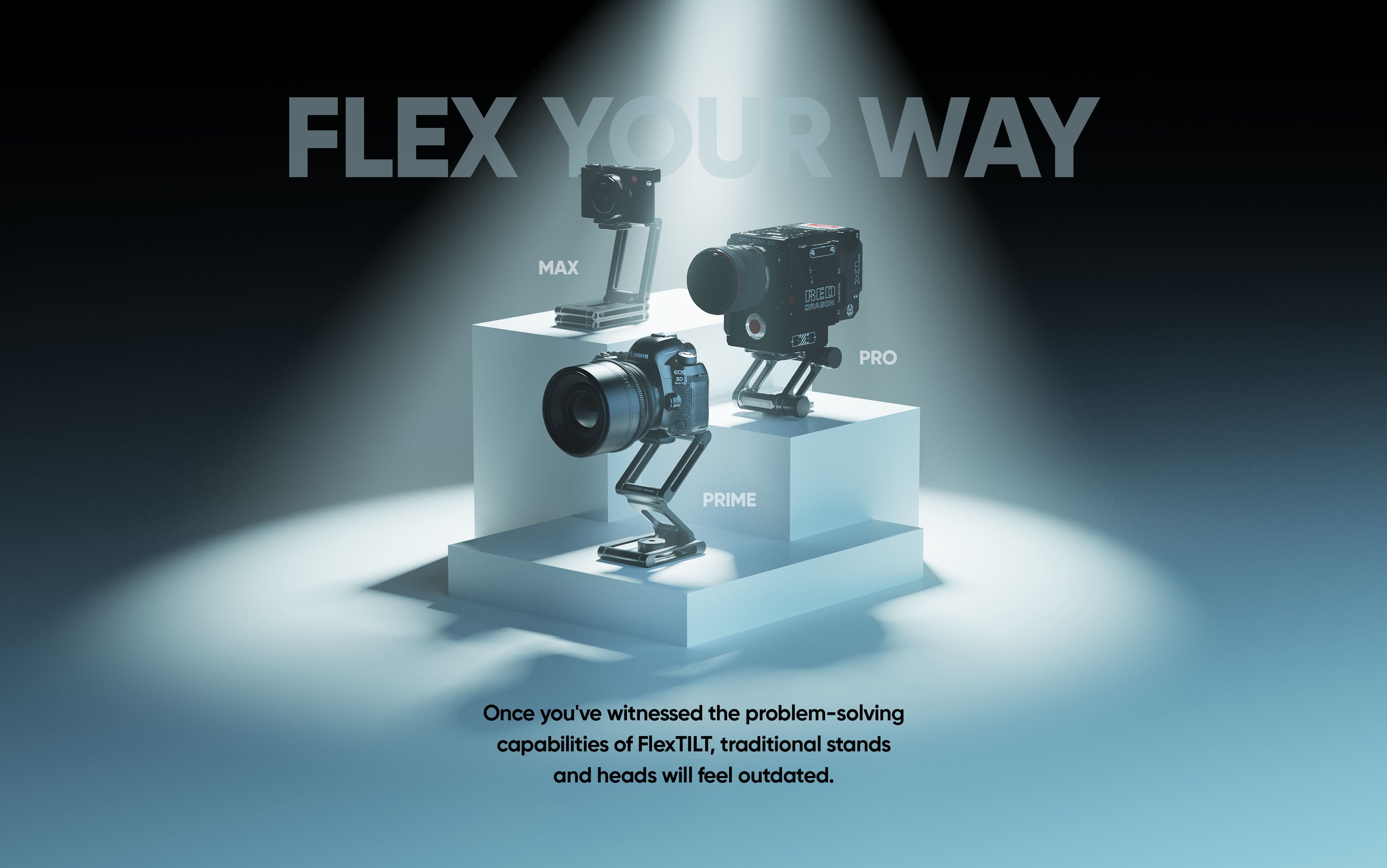 PRO: The only FlexTILT model with knobs to significantly increase carrying capacity for heavy PRO cameras.